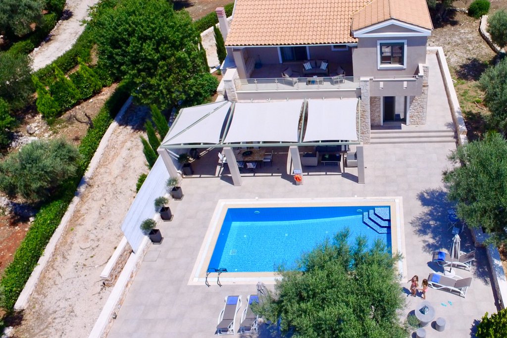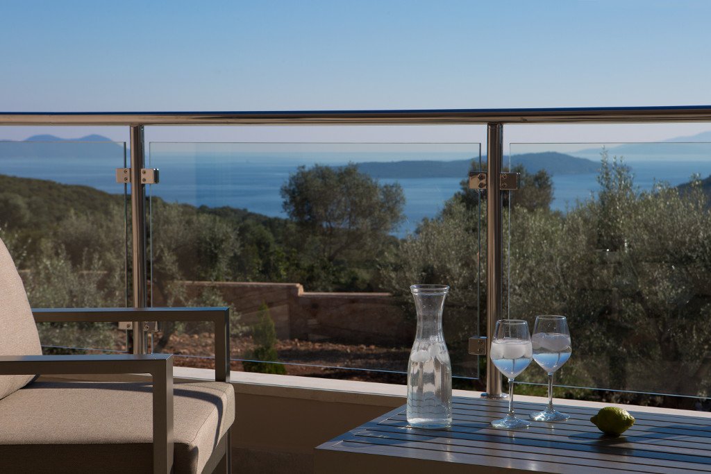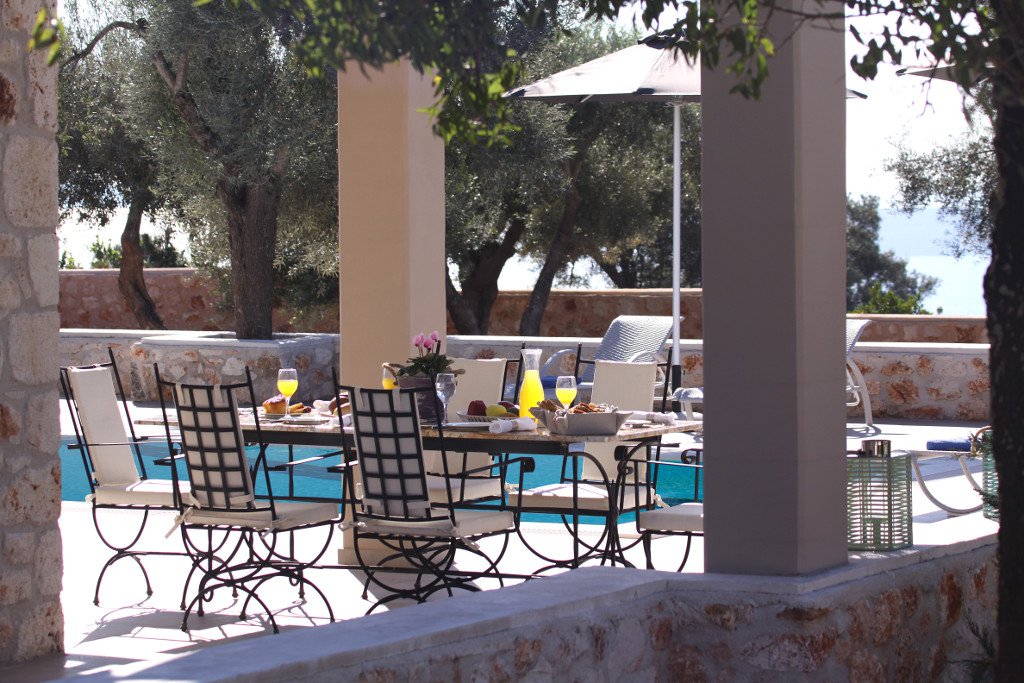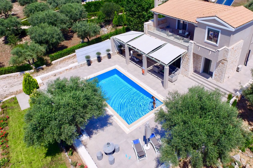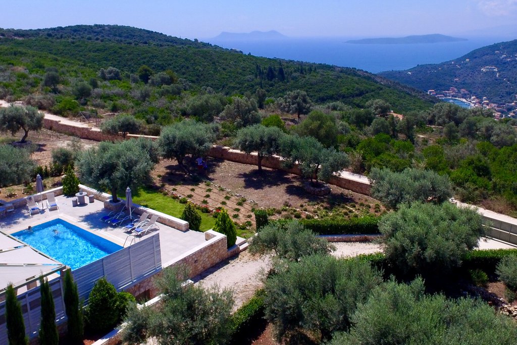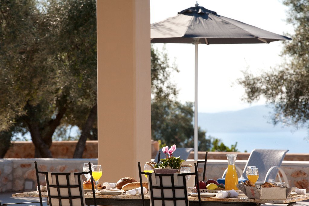 Villa Evangelia is located in a traditional, sunlit olive grove with a panoramic view of the Ionian Sea.