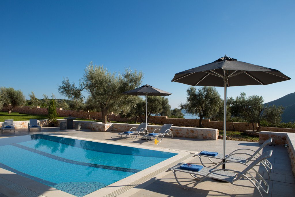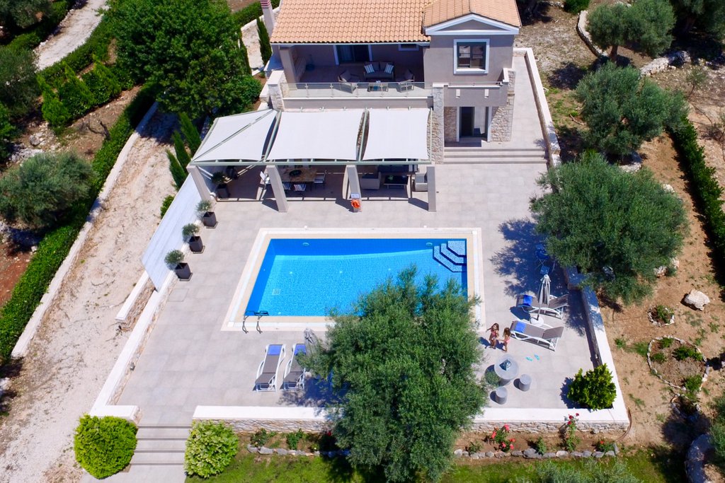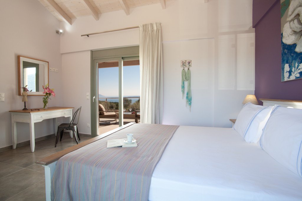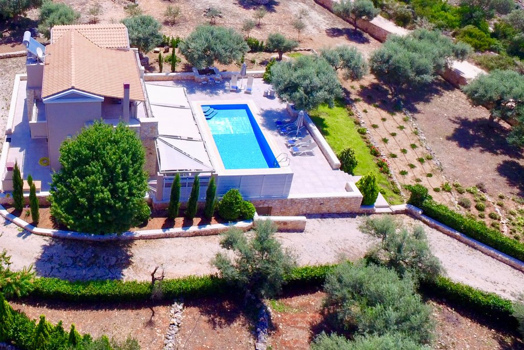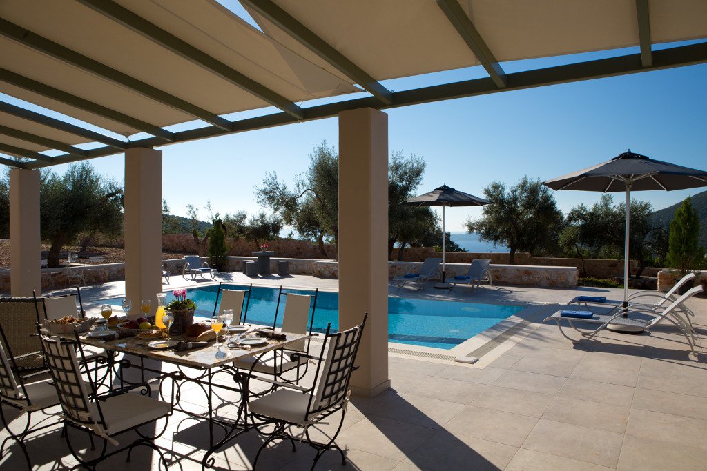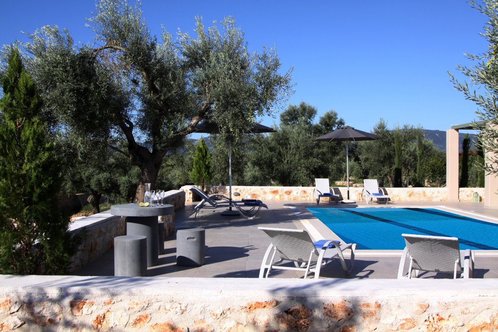 Villa Evangelia is located in a traditional, sunlit olive grove with a panoramic view of the Ionian Sea.