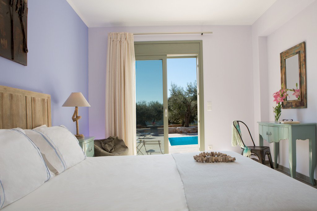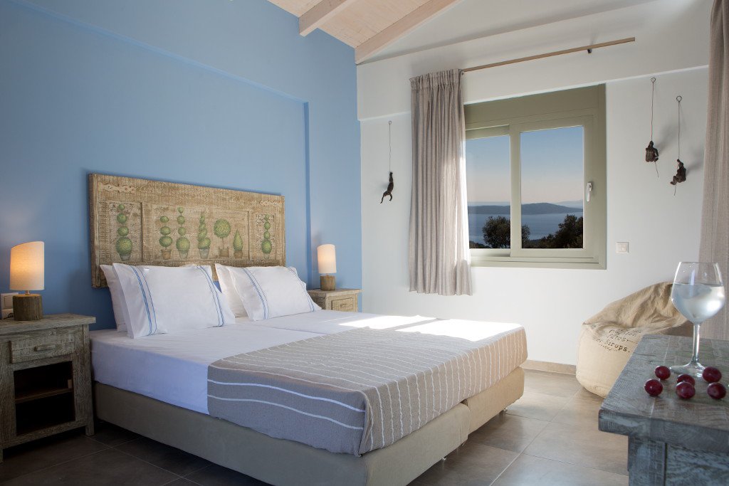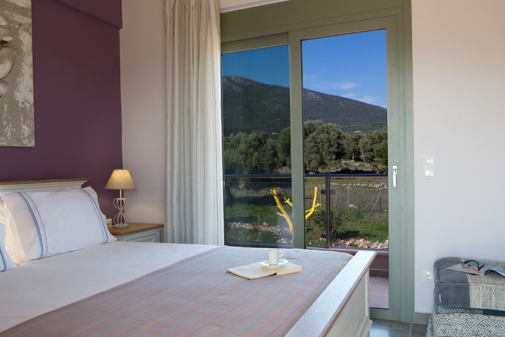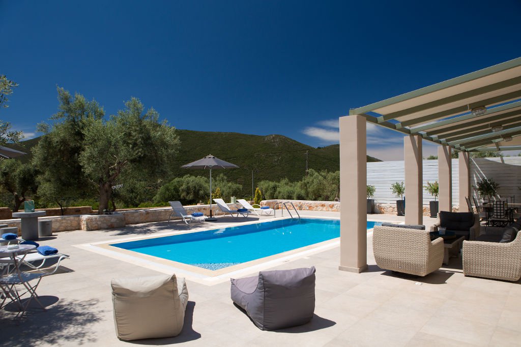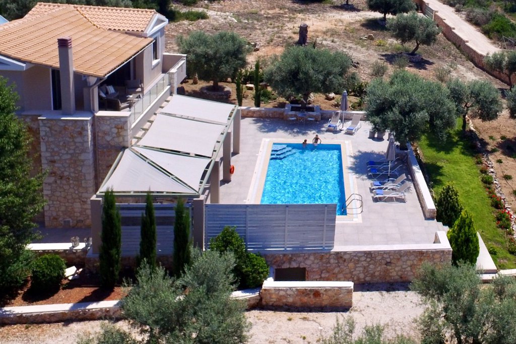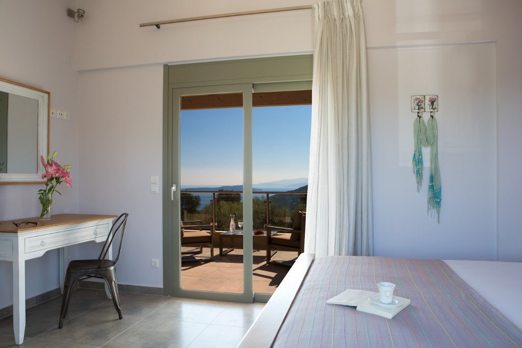 Villa Evangelia is located in a traditional, sunlit olive grove with a panoramic view of the Ionian Sea.